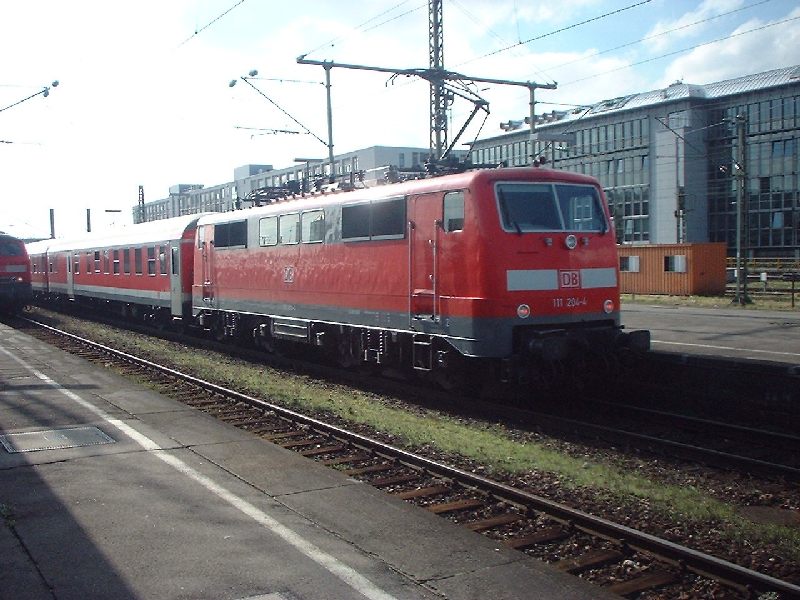 111 204-4 of the DB is waiting departure at Passau Hbf. 24.04.2003