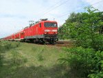 114018 schiebt am 31.07.ihre Regionalbahn nach Berlin Hauptbahnhof.