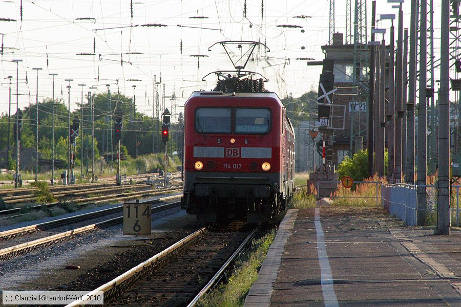 Deutsche Bahn - 114 017 Lok 114 017 in Cottbus Hauptbahnhof, aufgenommen am 16. Juni 2010.