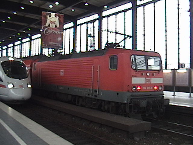 Class 411 from Berlin Ostbahnhof (former Hauptbahnhof from the days of the Cold War) approaches Berlin Zoologischer Garten station. This train will go to Berlin-Spandau, Hannover, Dortmund, Düsseldorf, Köln Deutz (transfer to connecting trains for Köln Hauptbahnhof and finally the Köln-Bonn Flughafen (airport). Also visible is a 114-series electric locomotive. Taken Friday 24 February 2006. © 2006 Josh Hanz (josh_hanz@hotmail.com) |