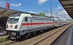 DB electric loco 147 587 (NVR 91 80 6147 587-0 D-DB) running southbound its IC service with double deck coaches at Bingen (Rhein) Hbf Germany. 17/06/2025.