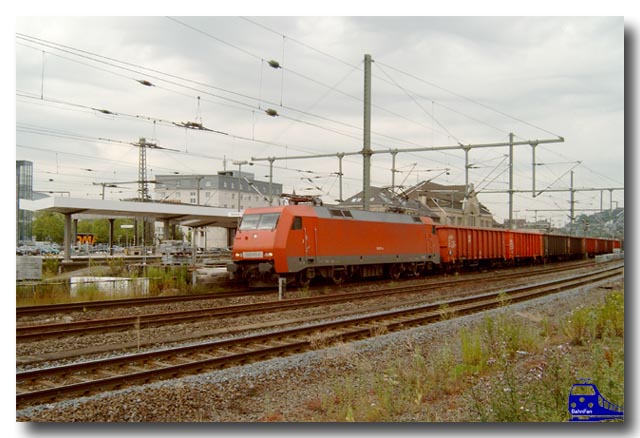 Cologne-Aachen) with a westbound ballast train on 18 August 2004.