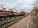HLE 186325 pulling a freight train, is passing in Lauwe (Belgium) on line 75, 20 March 2014