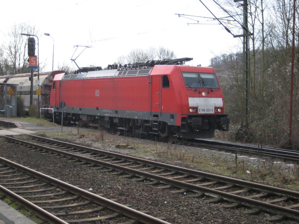 DB E186 323-2 vor einem Kalkzug in Auersmacher. Februar 2015.