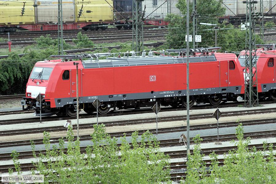 Deutsche Bahn - 186323-2 Lok 91 80 6186 323-2 D-DB in Mannheim Rangierbahnhof, aufgenommen am 04. Mai 2010.