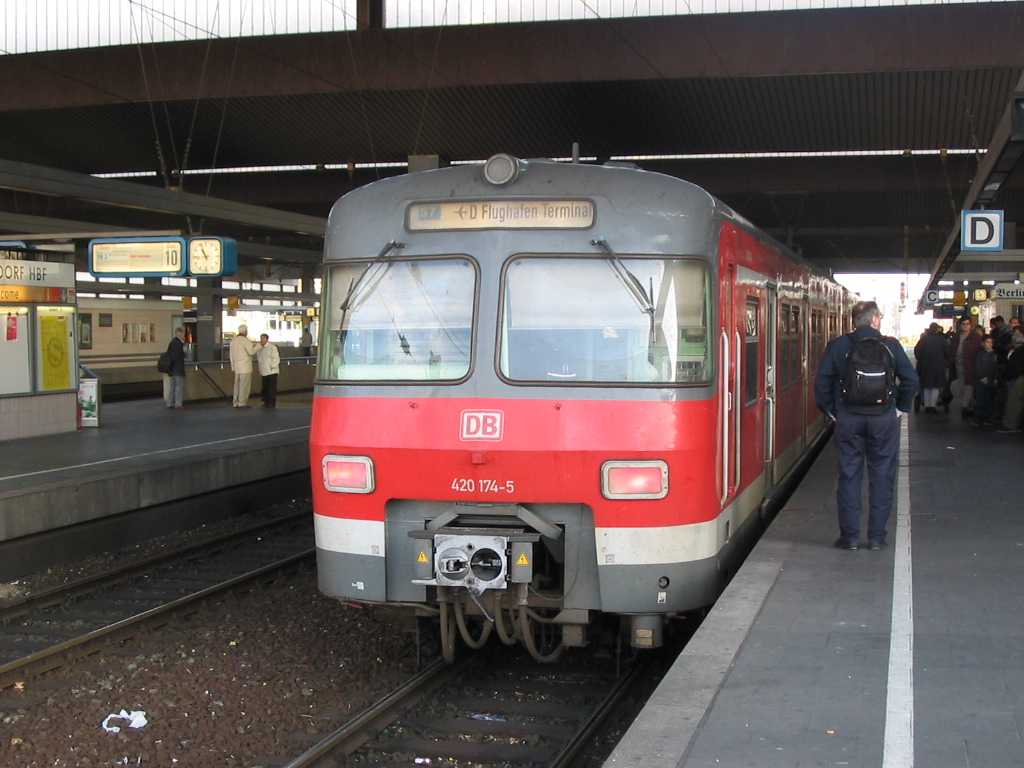 DB commuter train of the 420-series connecting Solingen and Dusseldorf airport. This line runs as S7 (commuter line 7) within the VRR-authority. Shot in Dusseldorf mainstation on 28th October 2004.