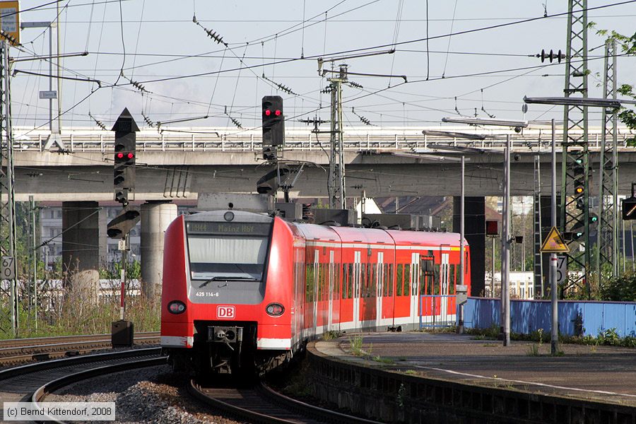 Deutsche Bahn - 425114-6 Triebwagen 425114-6 bei der Fahrt Ausfahrt aus Ludwigshafen am Rhein Hauptbahnhof Richtung Mainz am 02. Mai 2008.