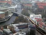 Another view from ALexanderplatz TV Tower. This time the ICE train is slightly closer. Two S-bahn trains are in evidence. We found it very efficient that it is possible to cross the City Centre on a through intercity-type train; a far cry from the nightmare of transfering between London stations.