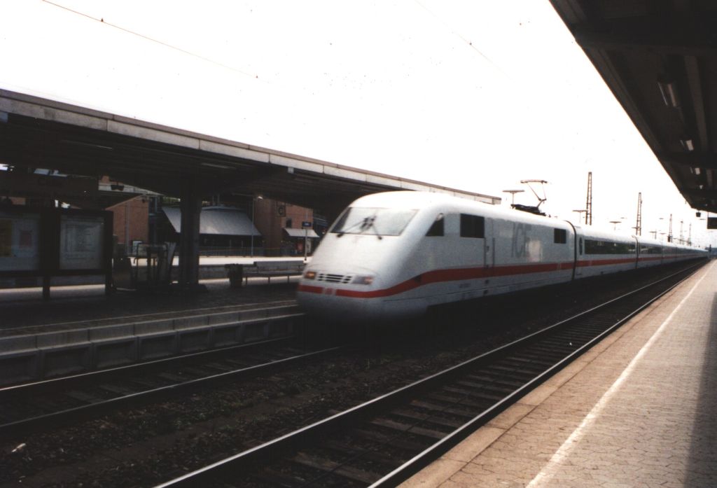 Ein nordwärts fahrender ICE 1 bei der Durchfahrt durch den Bahnhof Celle.