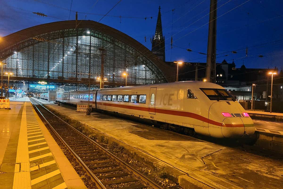Man wartet in Köln auf den verspäteten ICE 2 aus Berlin.