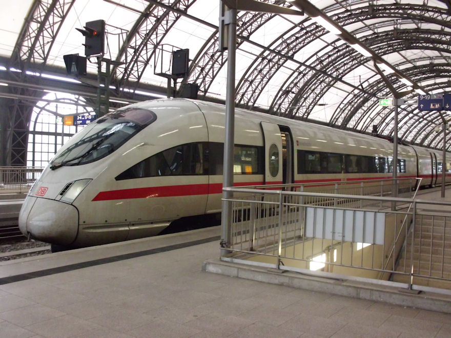 ICE T unit 411 057 'Innsbruck', Dresden Hbf 411 057 'Innsbruck' after arriving at Dresden Hbf. Built in 2004 and put into service 8 December 2004. Complete classification is 93 80 5 411 057-3 D-DB. ICE 1651 from Wiesbaden Hbf (12:23) to Dresden Hbf (18:04). Photo taken Sunday 9 June 2013. Photo: Steffen Mokosch (Steffen.Mokosch@web.de) |