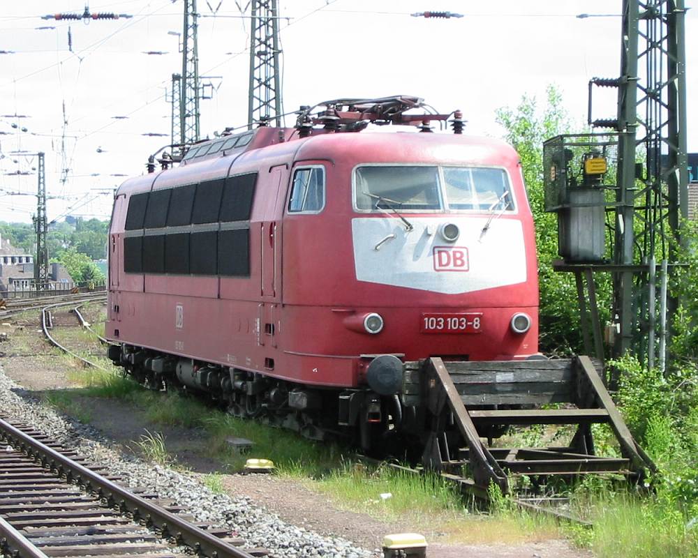 103 103-8 is parked at Aachen Hbf on 31 May 2002.