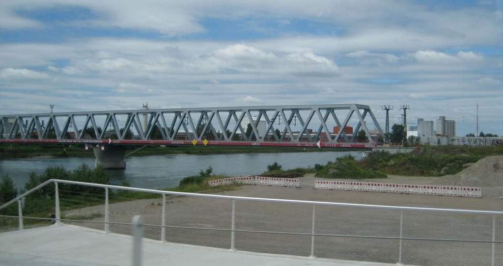 French-German Rhine Bridge on the Strasburg-Appenweier line, seen from the French side (Strasburg) close to the now disused French checkpoint for the Europe Road-bridge.