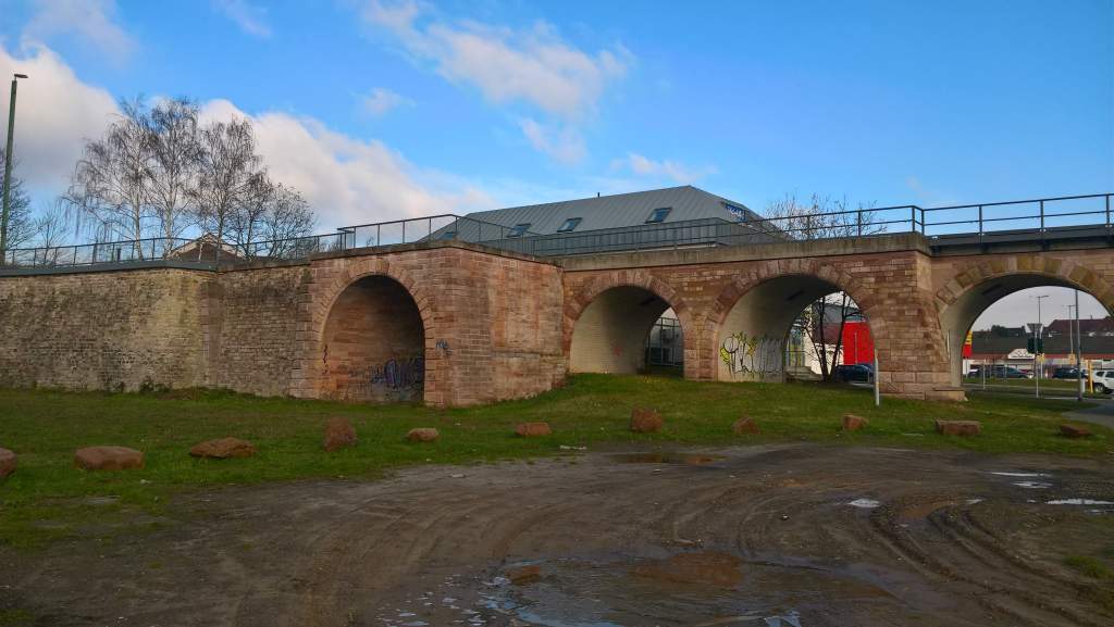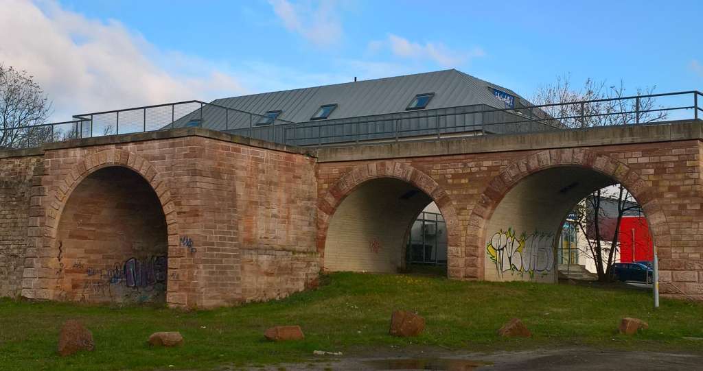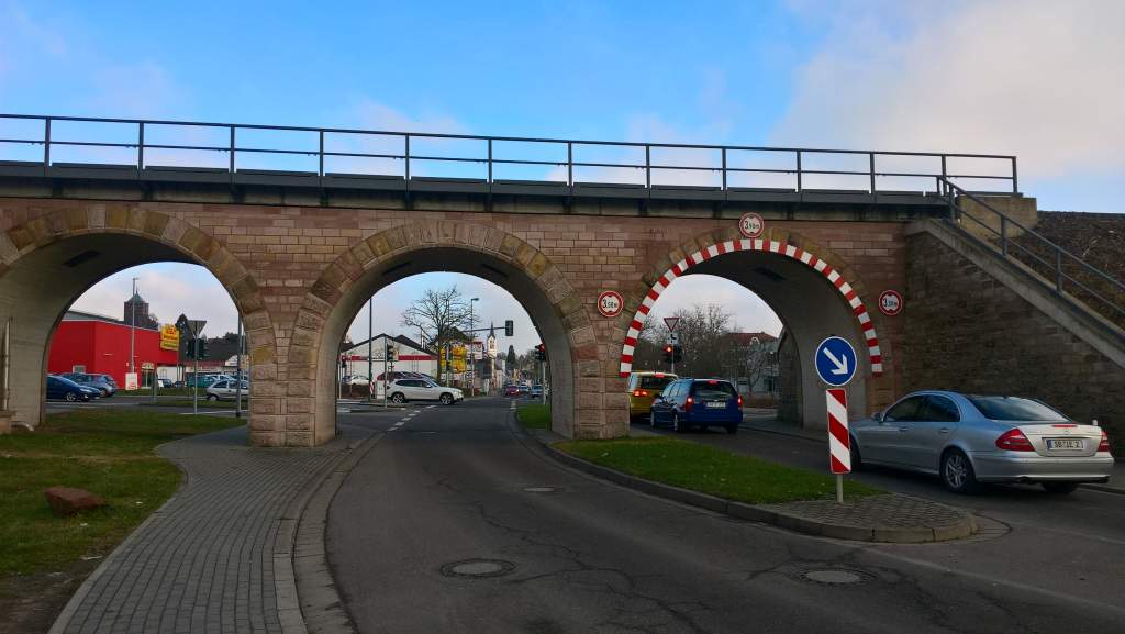 St. Ingbert Industriegleis, Viadukt 2 über die Dudweilerstraße. Dezember 2017. Blick Richtung Stadt. Photo by M. Koblischka |