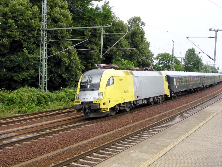Siemens Dispolok ES 64 U2 - 045 passed with a special train by IGE (the so called "Classic Courier") Werder/Havel on 27th of July 2005.