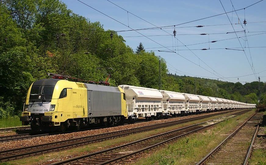 Dispolok - ES 64 U2-052 Lok ES 64 U2-052 mit einem Güterzug in Ludwigsfelde, aufgenommen am 19. April 2005.