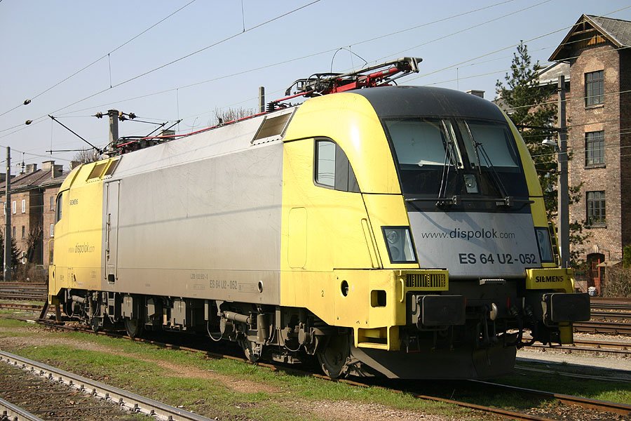 Dispolok - ES 64 U2-052 Lok ES 64 U2-052 mit einem Güterzug in Berlin Schönefeld, aufgenommen am 19. April 2005.