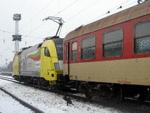Az EVM vonatbefolyásoló berendezés telepítésére Budapestre érkezett Dispolok ES64 U2 061-et egy Gigant (és egy Mazsola) hathatós segítségével odébbhelyezik, miközben a GySEV 1047 505-1 érkezik vonatért.