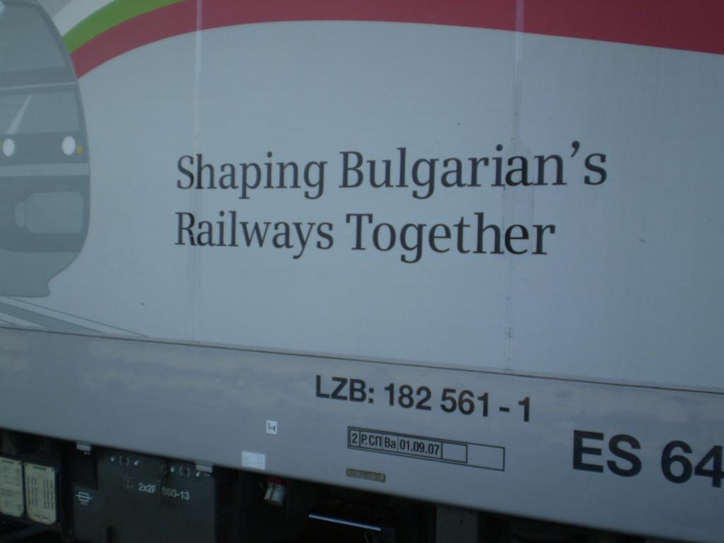 In spite of purpose of Bulgarian state railway company BDZ to stock a few lokomotives of this class, the mashine has still the only one.On this photo I took the plates with inscriptions and ES 64 U2 - 061 departures on central railway station Plovdiv with fast train to Sofia.