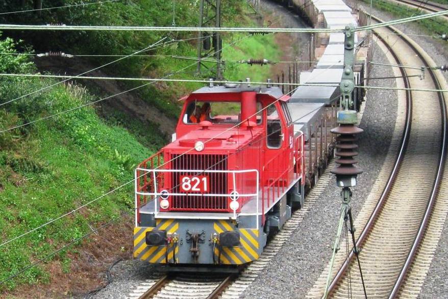 Dortmunder Eisenbahn 821 in das neue DE-farbenschemaā -nahe den Universität Duisburgs am 12 September 2011
