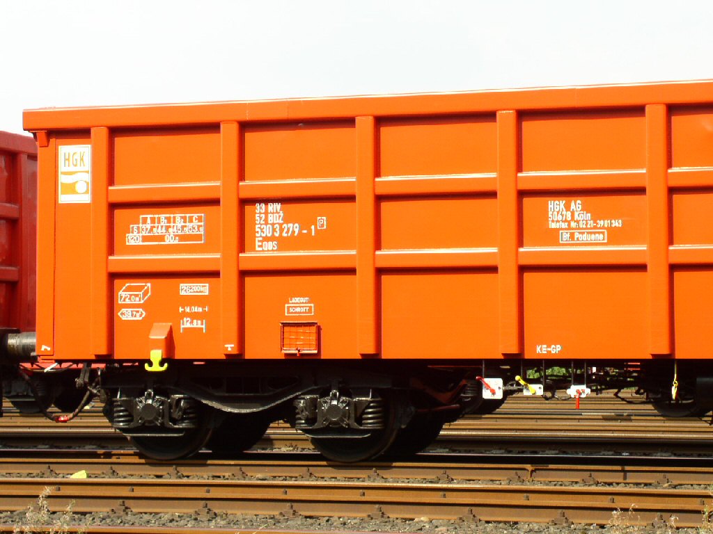 HGK eigener Waggon "Eaos" Bei den Fordwerken Koeln Man beachte das der Waggon bei der Bulgarischen Staatsbahn Bf. Poduene eingestellt ist. © M.Nolden 08-2003 ( trenes@arcor.de ) |