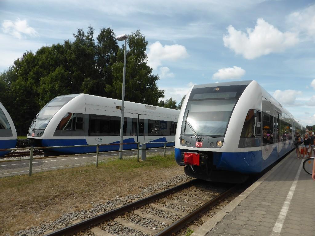 DMU to Stralsund with steering car 946 608 of UBB in front arrived at Seebad Heringsdorf on Usedom island.