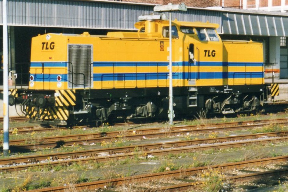 Eine der Lokomotiven der Transport und Logistik GmbH (TLG) am 31.08.2000 im Vorfeld des Bingener Hauptbahnhofs. One of the locos of the Transport And Logistic Company (TLG) seen on 08-31-2000 in Bingen main station. Digital-Foto von Volker Gelmroth, http://www.comports.com/pribahn. |