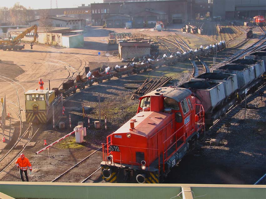 RAG 519 picked up a coal-train at northern part of port Duisburg-Walsum. Mine Duisburg-Walsum on 9th of December 2003. Photo by Arnim v. Herff (arnimvherff@uni-duisburg.de) 2003 |
