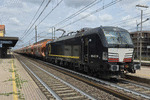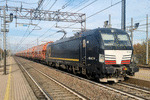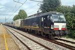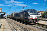 Beacon Rail electric loco 191 036 (NVR nr. 91 83 2191 036-9 I-DISPO) operated in lease by CFI Compagnia Ferroviaria Italiana with a southbound box train at San Giorgio di Piano BO station. 12/06/2024.