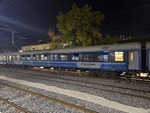 A couchette car with number 51 56 05 70 504 - 2 type "Bocmh" of ZSS ("Zeleznicna Spolocnost Slovensko / Slovakian Railways) at central railway station Plovdiv in composiution of an OPTIMA train.
