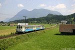 Der Pendelzug ex BOB/RBS auf der Talstrecke der BZB Richtung Grainau. 19.7.2004