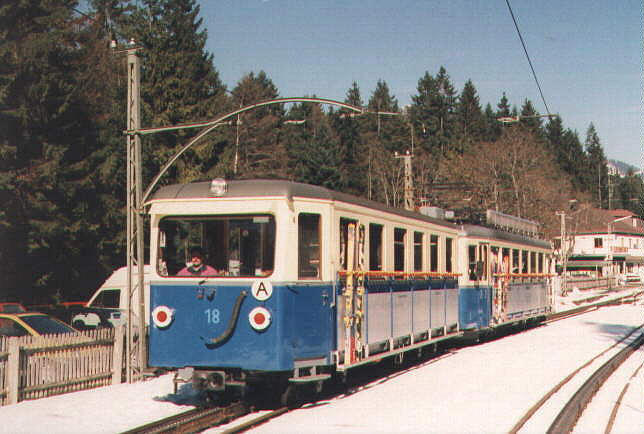 Bayerische Zugspitzbahn at the Eibsee station. April 2002.