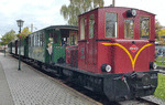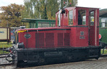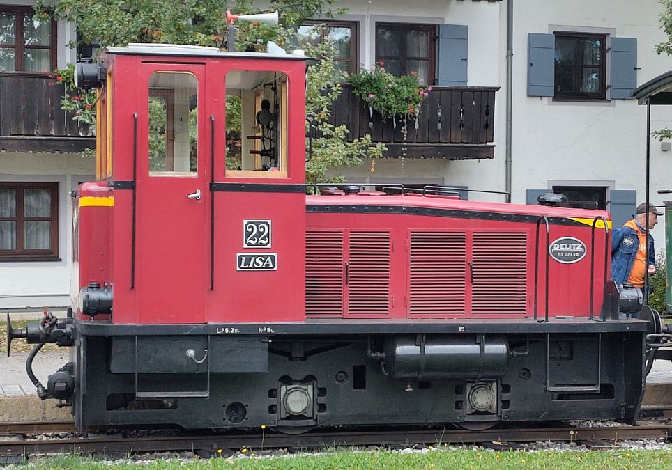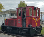 Chiemseebahn 22 "Lisa". Deutz KG 125 BS (1000 mm gauge) built 1962 for Halberger Hütte Brebach as No. 9. 1982 sold to Chiemseebahn and rebuilt with a body resembling a steam locomotive. 2015 rebuilt again similar to the original shape as built (in green). In 2023 it received a red paint as it looked when built. Prien-Stock, 2025-10-11. |