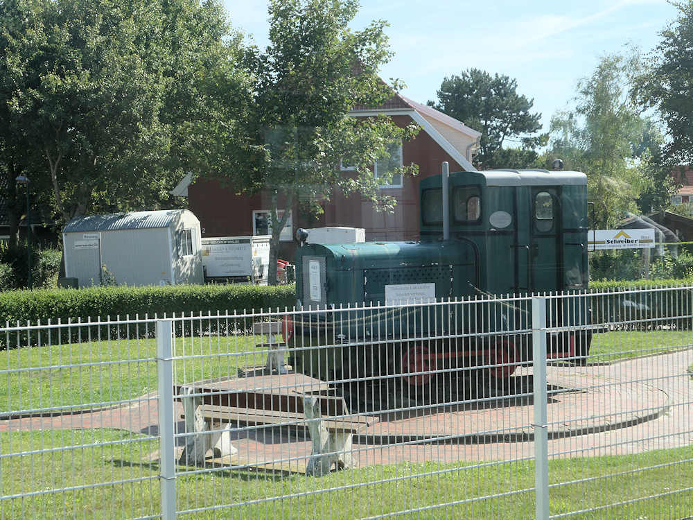 The freight train has left the harbour, and a passenger train arrives to bring the tourists into the village of Langeoog.