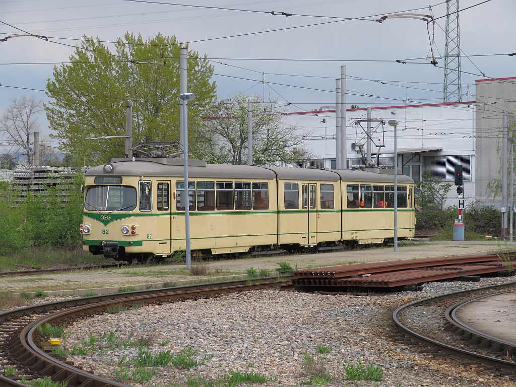 OEG - 82 Triebwagen 82 aus dem Jahr 1966 am 15. Juli 2007 in Edingen (Baden) in der Wagenhalle.