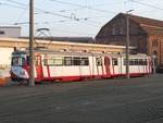 OEG - 100 Triebwagen 100 am 11. März 2007 auf Linie 5 in Mannheim bei der Haltestelle Universität.