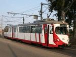 OEG 102 double-ended GT8 tram on route 5 approaching Mannheim station. Route 5 goes from Mannheim to Heidelberg.