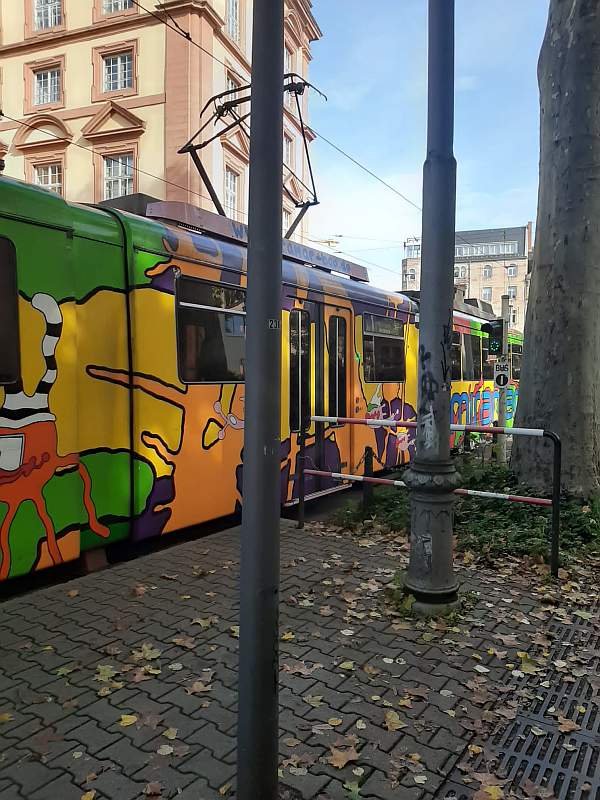 rnv 4115 "Miramar" auf den Planken. Oktober 2022. Durch die Umleitungen in der Stadt und dem Umbau Bensheimer Strasse kommen die GT8 wieder werktags zum Einsatz. Photo by D.Koblischka |