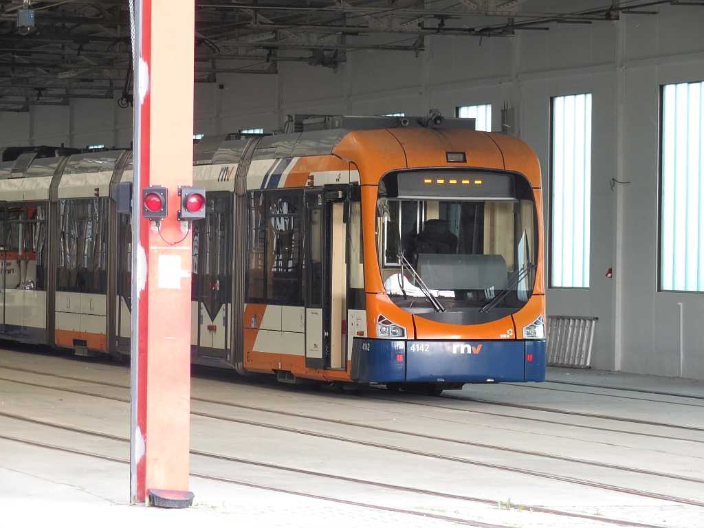 rnv 4142 in der OEG Werkstatt Edingen. Mai 2023. Photo by M.Koblischka |
