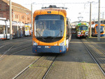 rnv 4144 (Linie 5) im Bahnhof Käfertal OEG. Oktober 2023. Photo by M.Koblischka |