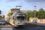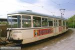RHB - 1014 Triebwagen 1014 in Ludwigshafen/Rhein beim Einsatz für Fußball-Fans. Hier wartet der Zug nahe der Haltestelle Giulini (04. Mai 1985).
