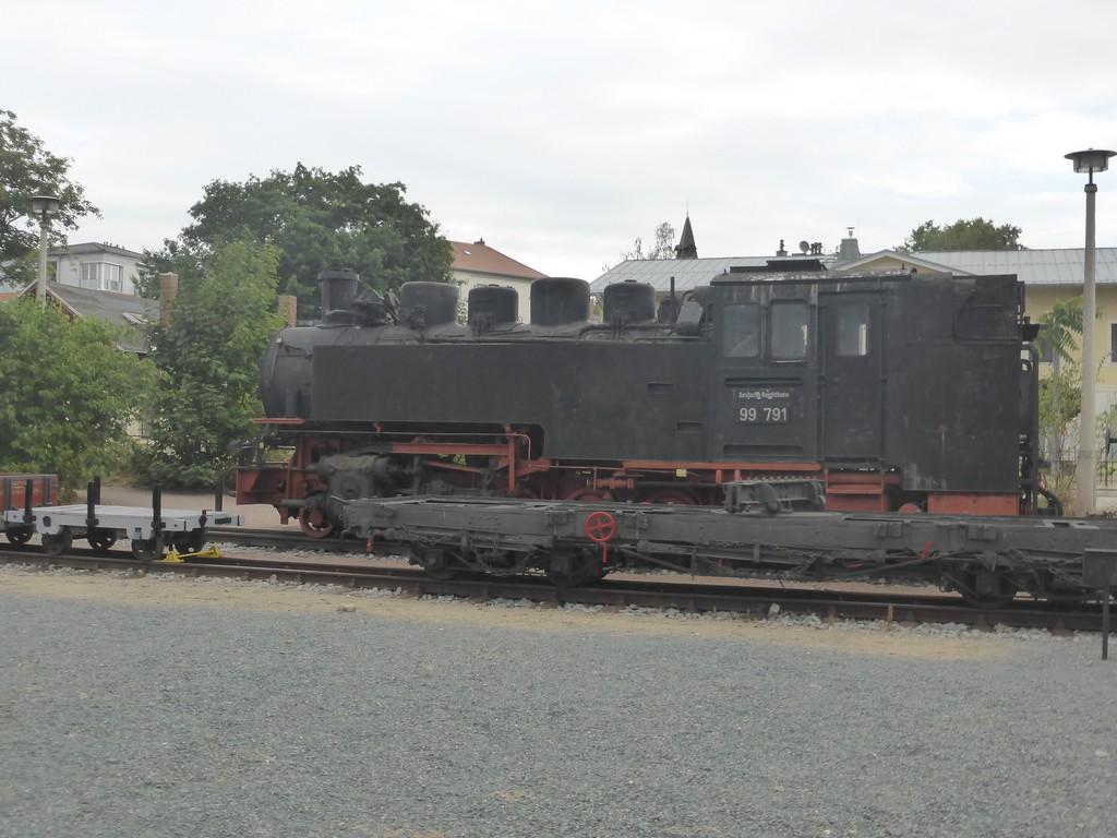 Narrow gauge steam locomotive 99 791, Radebeul Ost 99 791 owned by the Traditionsbahn Radebeul e. V. (TRR) exhibited during the 126th anniversary of the Lößnitzgrundbahn on Sunday 12 September 2010. Built in 1955 by VEB Lokomotivbau Karl Marx Babelsberg, since 1996 only used for exhibition purposes. Left behind: transporter wagons. Photo: Steffen Mokosch (Steffen.Mokosch@web.de) |