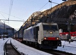 RTC - 186 283 Lok 186 283 bei der Fahrt durch Gries, aufgenommen am 30. März 2011. Gries ist eine Halte- und Ladestelle an der Strecke Innsbruck - Brennero bei Kilometer 106.7 auf 1255 m Höhe. Von der Grenze zu Italien bis hier hat die Lok fünf Kilometer zurückgelegt.