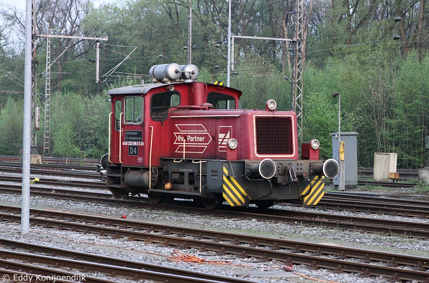 Locomotive D3 (ex-DB 332 161-9) of the Bentheimer Eisenbahn at the railway station of Laarwald on 22-4-2000. Photo and scan by Date Jan de Vries (email: datedevries@hotmail.com) |