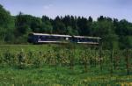 Zwei BOB NE 81 als Regionalzug Aulendorf - Friedrichshafen nahe Meckenbeuren. May 2001. Photo by Norbert Walter (n.walter@gmx.de) |