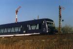Ein BOB Regionalzug Friedrichshafen - Aulendorf nahe Ravensburg. Dieser Zug besteht aus 3 (der 4 vorhandenen) BOB Regioshuttle. Züge aus 3 BOB-Triebwagen verkehren ziemlich selten. June 2001. Photo by Norbert Walter(n.walter@gmx.de) |