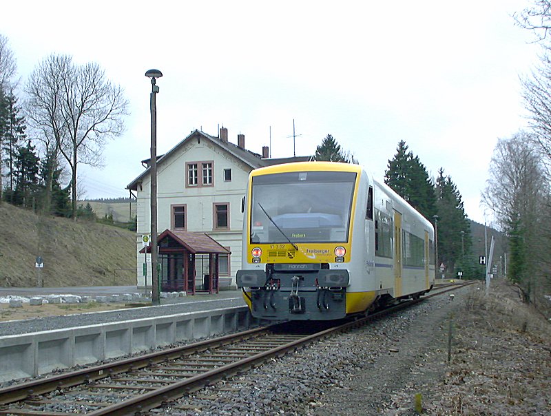 Freiberger Eisenbahn - Germany The line from Freiberg to Holzhau used to continue to Moldova in the Czech Republic, but the 2km of railway between these villages is no longer in service. Moldava is located to the right behind VT3.02 of the FEG. Holzhau - 10/02/2002