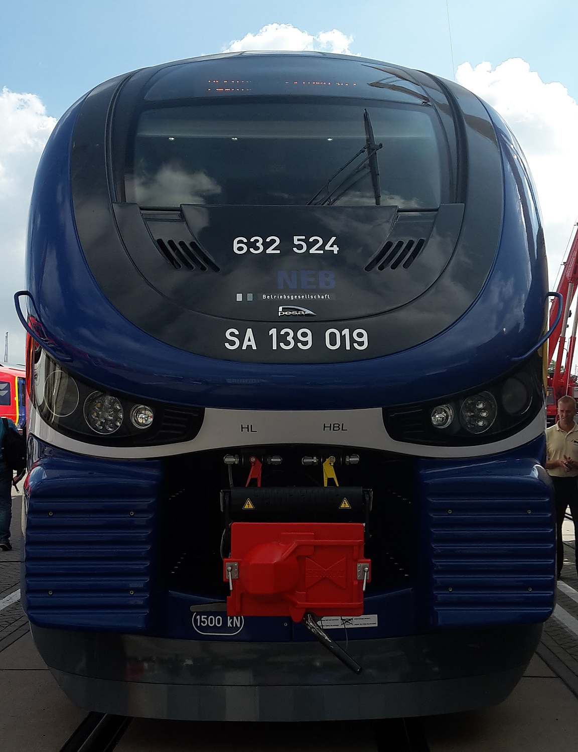 | Niederbarnimer Eisenbahn 95 80 0632 024-5 D-NEBB = SA 139 019. 7 two-car and 2 three-car sets are ordered. InnoTrans, Berlin, September 2016. |