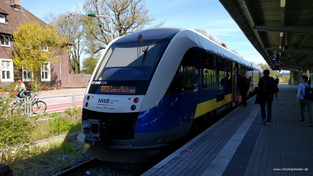 NordWestBahn VT 648 074 RB59 (NWB 82525) Esens -> Wilhelmshaven Hbf Bahnhof Sande 11.Mai 2017 Photo: Christian Immler - fotos@christianimmler.de - www.christianimmler.de |