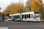 RegioTram Kassel - 702 Triebwagen 702 auf Linie RT5 in Kassel an der Haltestelle Hallenbad Ost, aufgenommen am 28. Oktober 2007.
